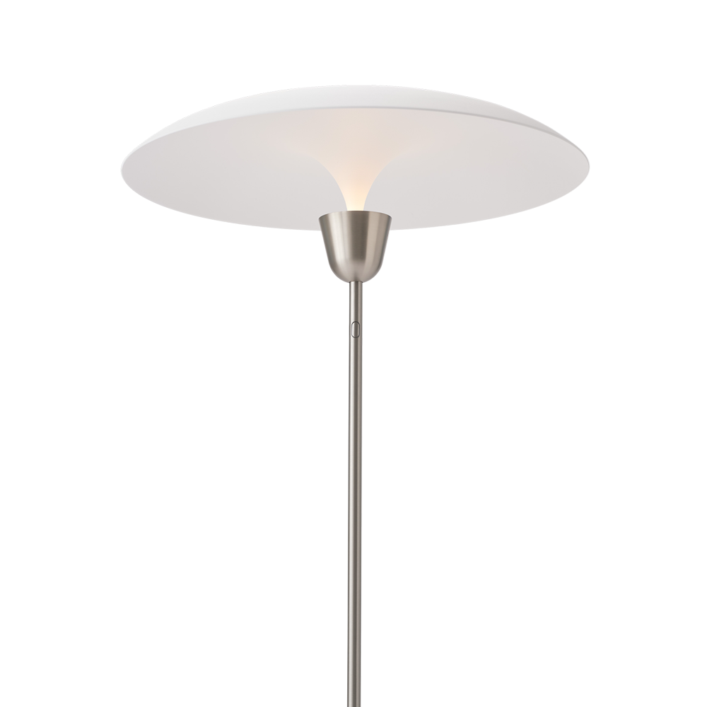 Archetypes are reimagined through the contoured silhouette and technical elegance of the Kantarell Floor Lamp, a distinctive piece with timeless potential. The reflector functions like an inverted funnel, effectively spreading the light outward from the almost hidden light source at its centre. The light is activated with a simple gesture ? a gentle touch of a seamlessly integrated button, ensuring a smooth and pleasant interaction. The driver is discreetly stoved away at the plug, which makes way for an incredibly sleek design, distinguished by precision and fluidity.