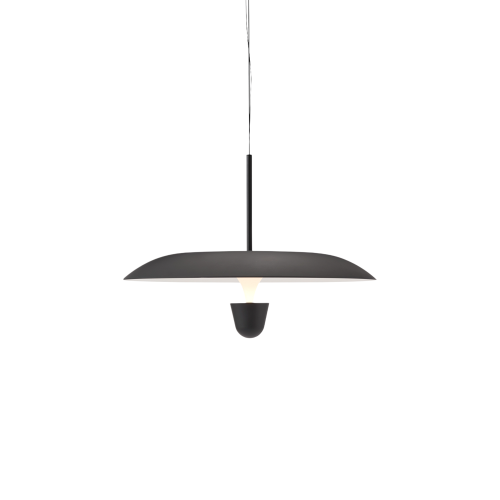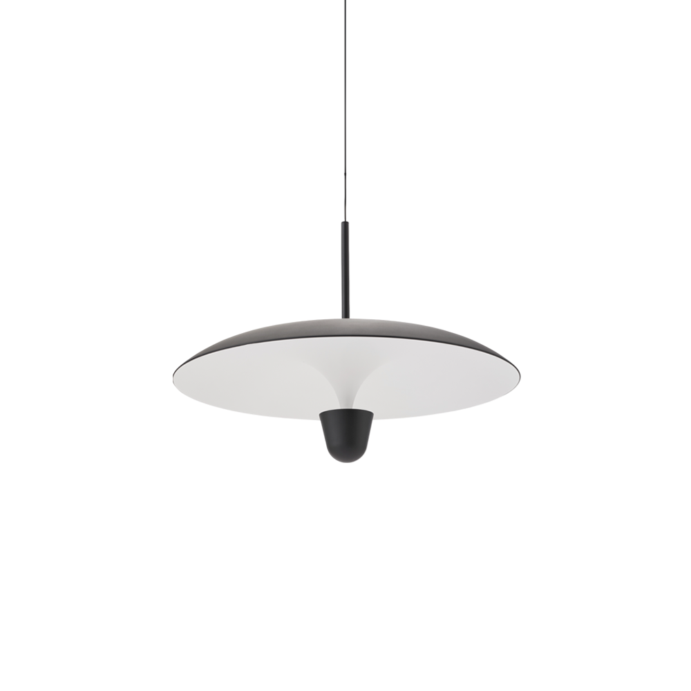 The idea for the Kantarell series originated from a study of directing light. With its trum- pet-like shape acting as a funnel, Kantarell spreads the light from a nearly hidden light source at its centre. The strong silhouette of the lamp invites different mounting options? high or low ?unfolding various aspects of the poetically flowing shape, from the vaulted un- derside to the soft dale of the top. With every viewpoint, the Kantarell Pendant Lamp makes a sculptural addition to a space.