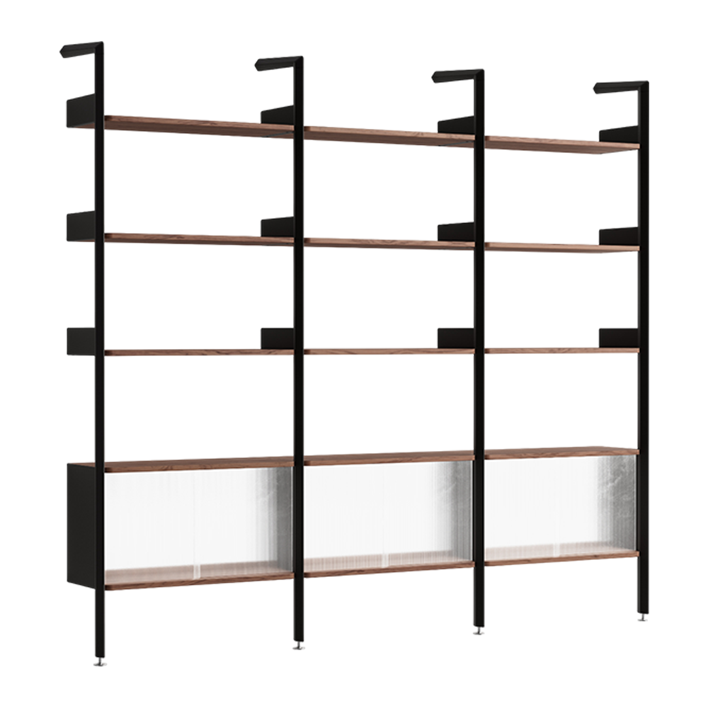 A modular shelving system with sculptural utility at its core, Rombe has been designed to adapt to the multifaceted needs of modern living. Available in 11 set configurations with the opportunity to add additional bays and shelves, the system grows and evolves with and around its surroundings.