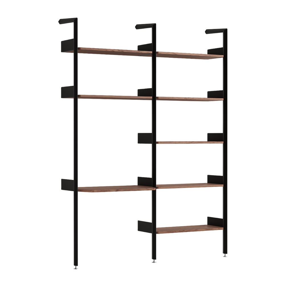 A modular shelving system with sculptural utility at its core, Rombe has been designed to adapt to the multifaceted needs of modern living. Available in 11 set configurations with the opportunity to add additional bays and shelves, the system grows and evolves with and around its surroundings.