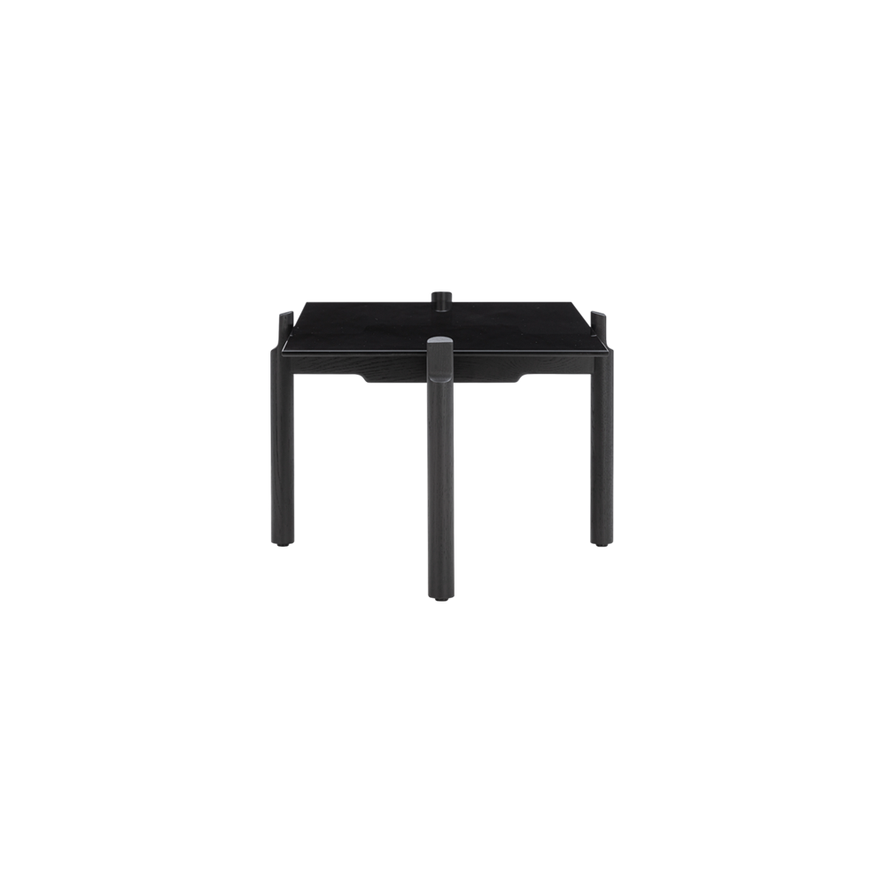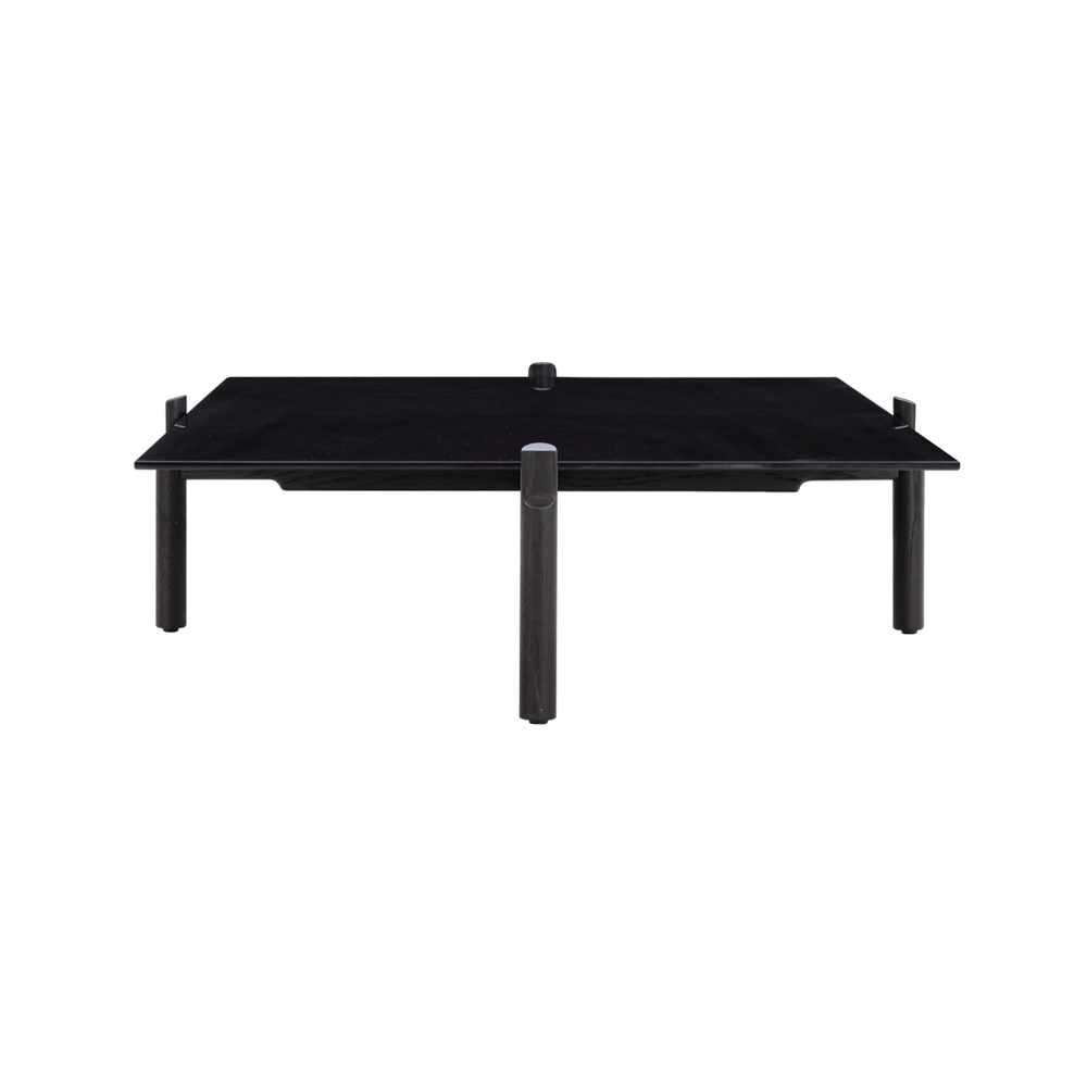 Offered in seven sizes and shapes, spanning round, square, and rectangular outlines, the Notch table series by Gunther Pelgrims is distinguished by a striking graphic character that accentuates the inherent qualities of the components. Crafted in black glass with slightly bevelled edges, the semi-transparent tabletop is resting atop a frame in black stained oak with visible grains, featuring remarkable notched cabinet maker details that elevate the design further.