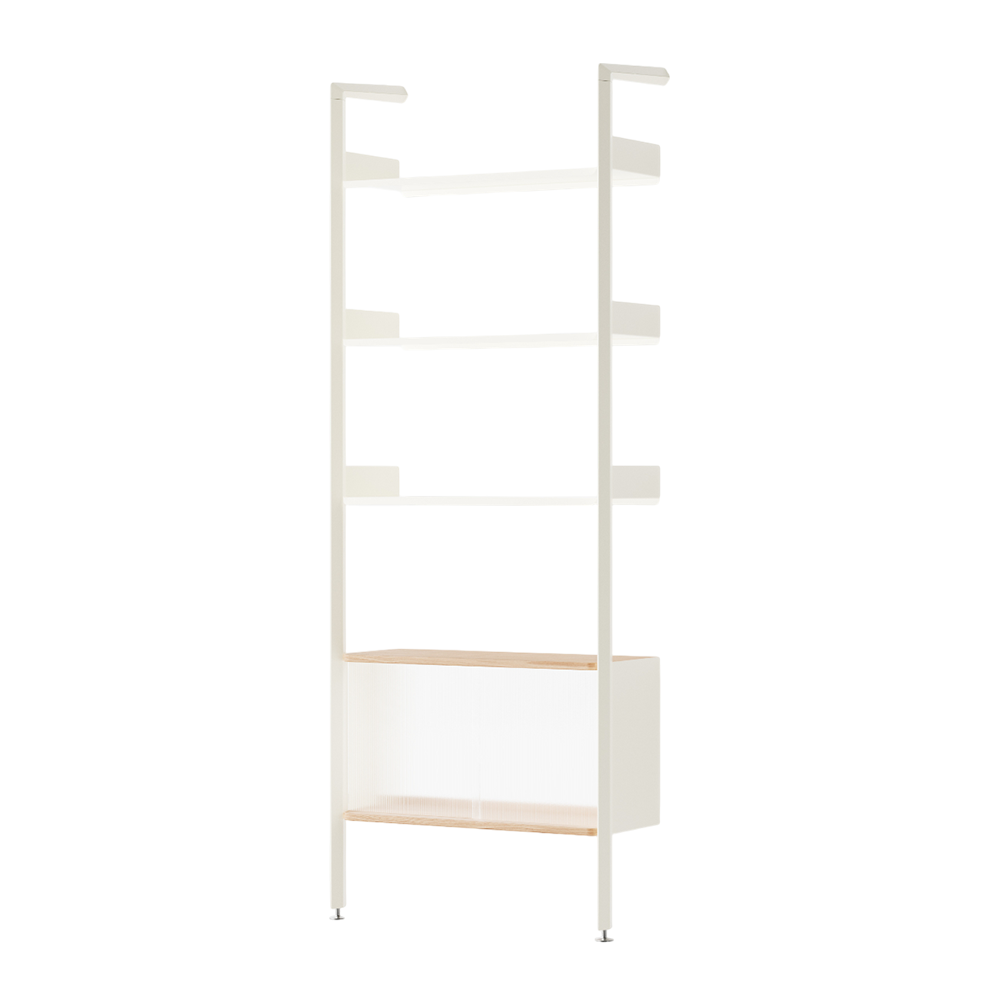 A modular shelving system with sculptural utility at its core, Rombe has been designed to adapt to the multifaceted needs of modern living. Available in 11 set configurations with the opportunity to add additional bays and shelves, the system grows and evolves with and around its surroundings.