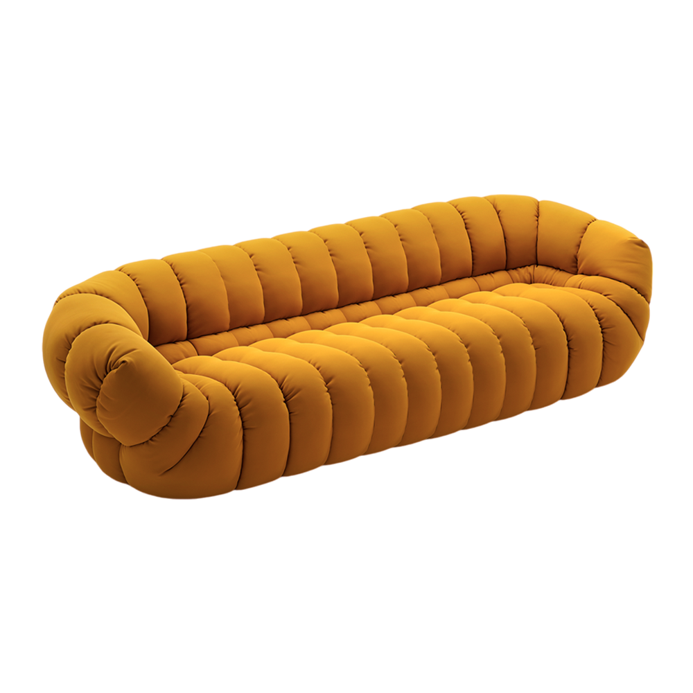 The Cuddle sofa draws inspiration from the oversized puffy down jacket, incorporating a meticulous piece-by-piece sewing technique. Thoughtfully crafted with channel quilting, memory foam, and down feather filling, it ensures a supremely comfortable seating experience, perfectly suited for a relaxed, laid-back lifestyle in contemporary living.